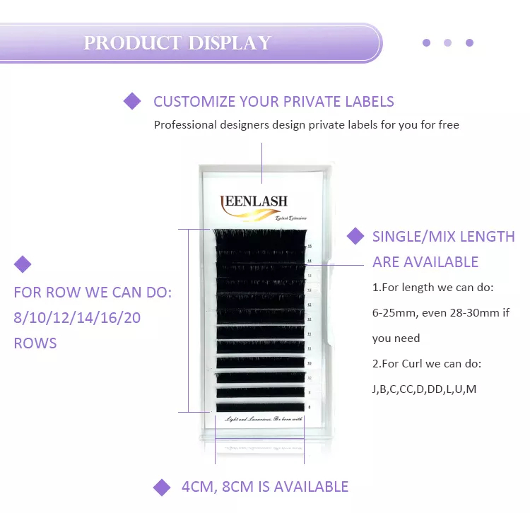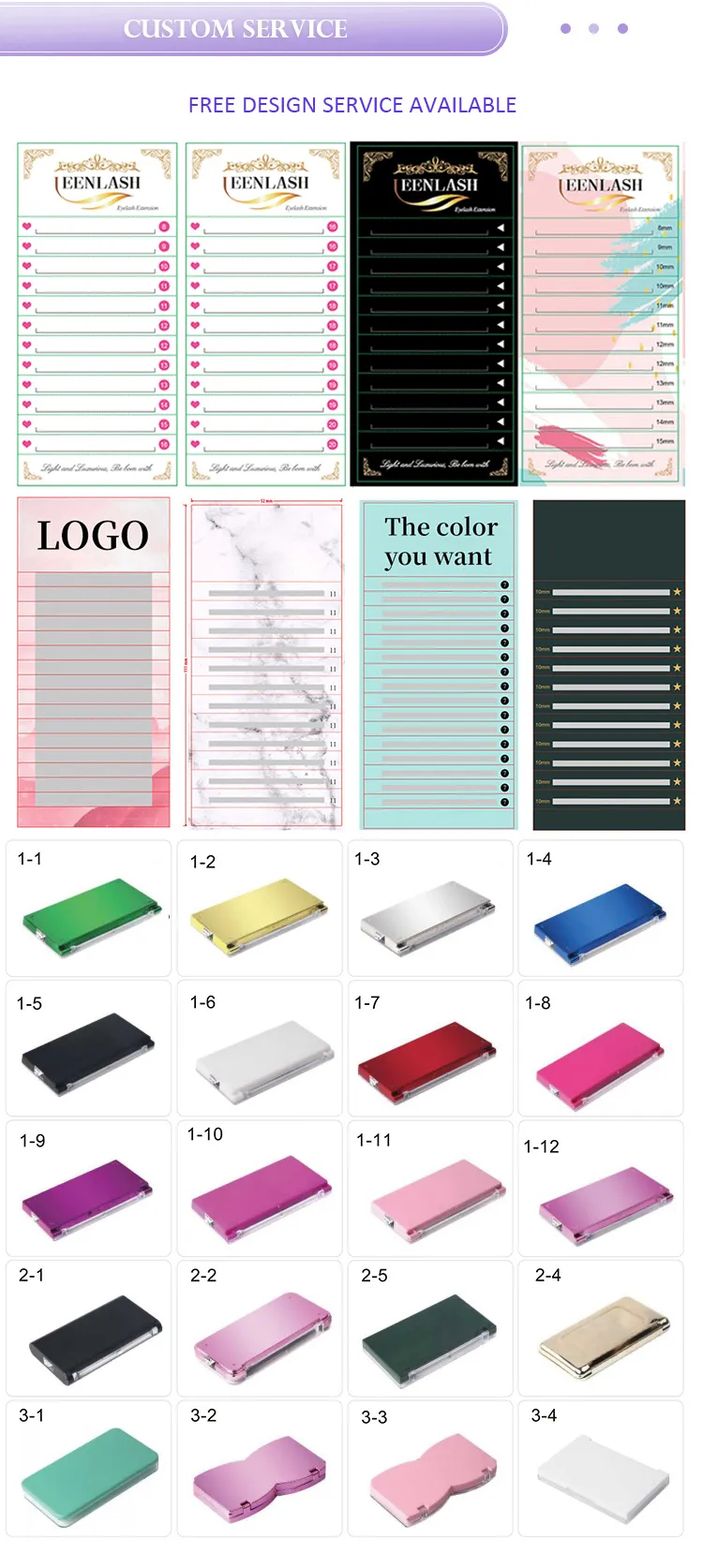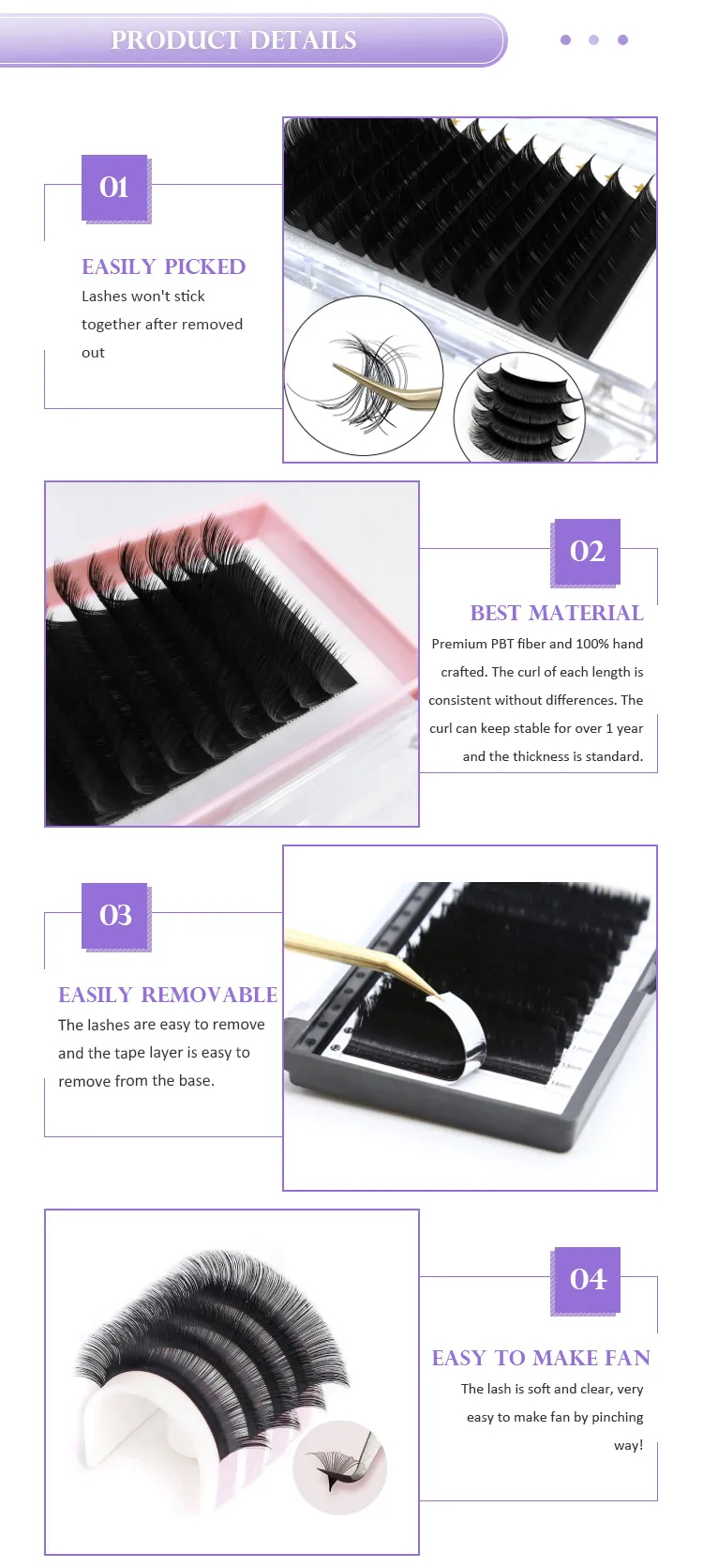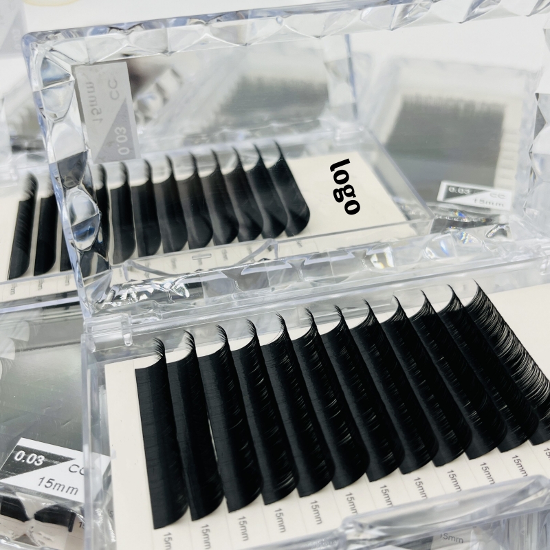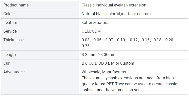 Product name :Classic individual eyelash extension Color :Natural black Curl: CC, L, B, CURL, D, C, DD,J Thickness:0 03mm, 0 05mm, 0 07MM, 0 10mm, 0 12mm, 0 15mm Customized packaging logo